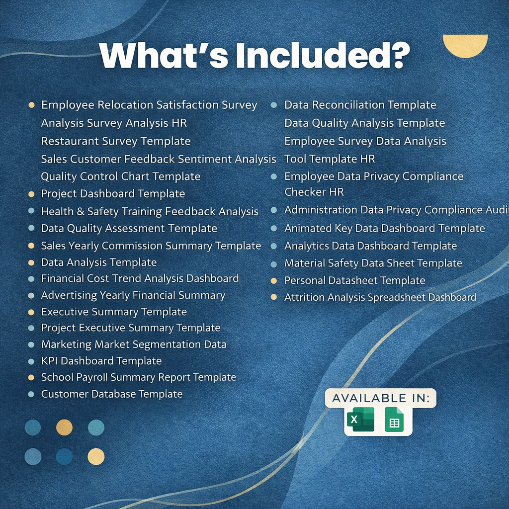 Whether you’re tracking performance, analyzing data, or preparing reports, this bundle gives you everything you need to present information clearly, professionally, and efficiently.