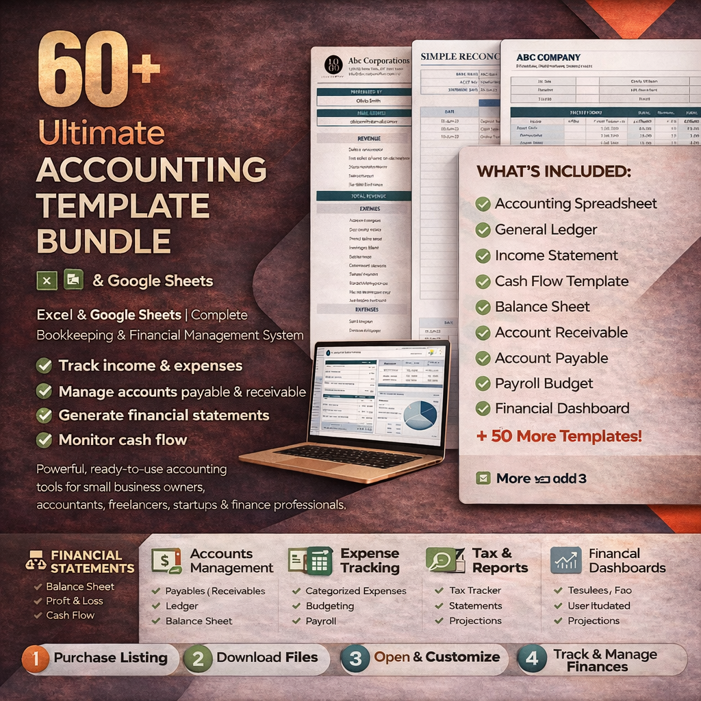 Take full control of your business finances with this powerful 60+ Accounting Template Bundle, designed for small business owners, freelancers, accountants, startups, and finance professionals.