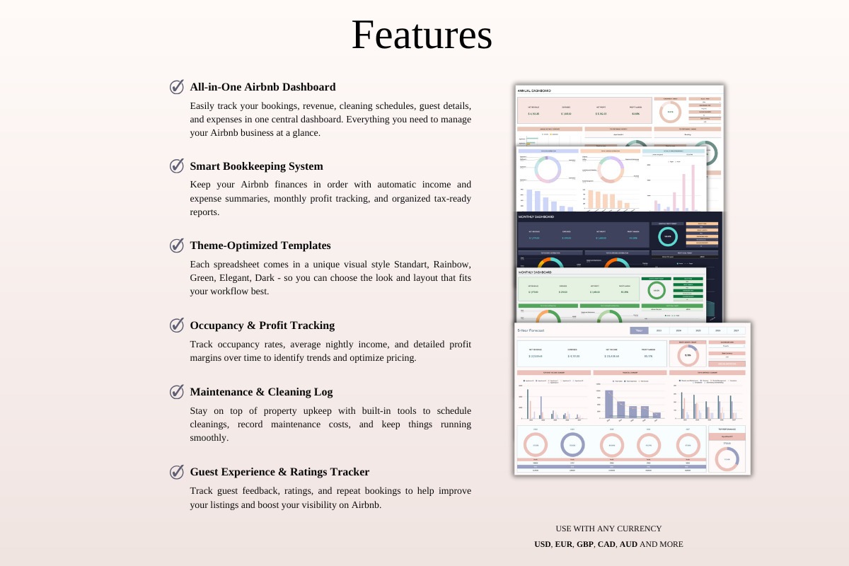 ✔️ Airbnb Organizer Spreadsheet (Elegant Theme)