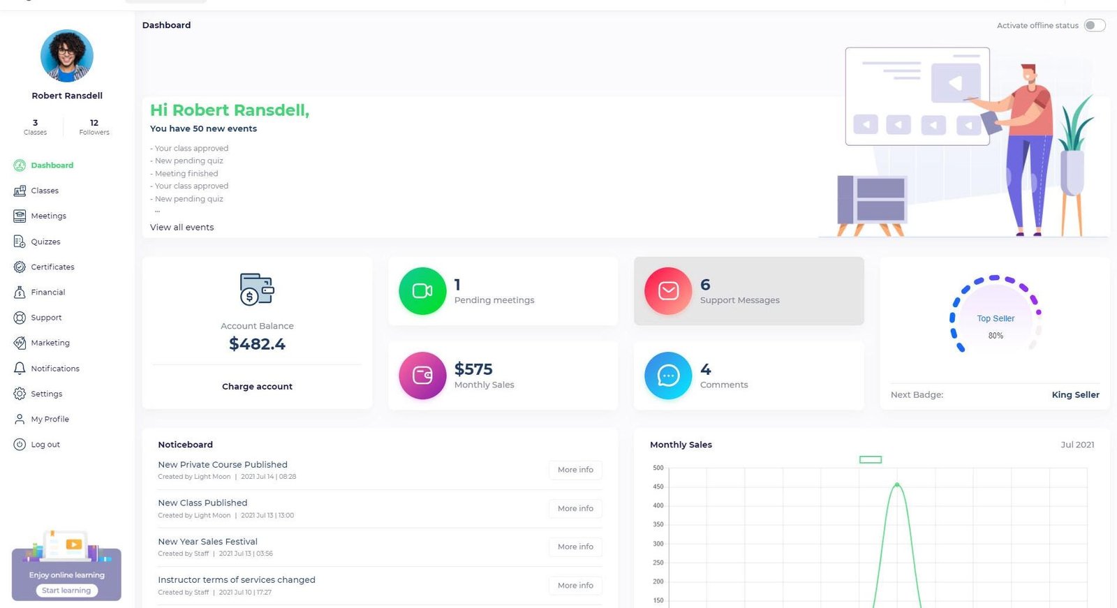 This ready-made course selling website is a complete e-learning platform built and delivered within 24 hours so you can start selling fast.
